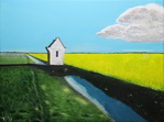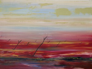 2021Geabstraheerd landschap met klaprozen.Het gevoel laten spreken. De zijkanten van het doek zijn doorgeschilderd.