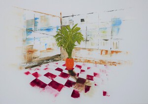 2017Het werk heeft een creme passe-partout van 30 x 40 cm en zit in hout(kleur) lijst 38 x 48 cm.