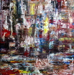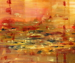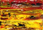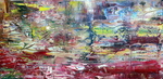 2017Spiritueel. Zonder idee vooraf de kleuren hun werk laten doen. Het werk zit in een houten, warm-rode baklijst