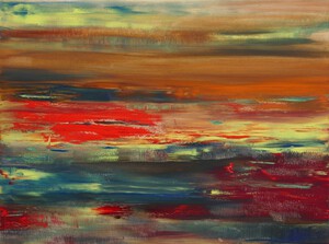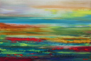 2021Geabstraheerd landschap met klaprozen.Het gevoel laten spreken. De zijkanten van het doek zijn doorgeschilderd.