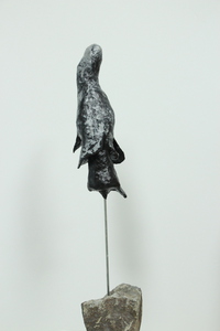 2022Beeld en stenen sokkel samen zijn 70 cm hoog In navolging van haar serie ‘Moving earth’ heeft Trudie een serie ‘People in motion’ gemaakt, waarbij de menselijke vorm in meer of mindere mate herkenbaar en hun last voelbaar is. Het zijn stille getuigen van wat er op dit moment in de wereld gaande is: op de vlucht voor ellende, tevens op weg naar een betere toekomst.