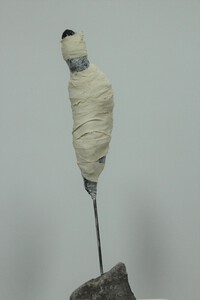 2022Beeld en sokkel samen zijn 61cm hoog. In navolging van de serie ‘Moving earth’ heeft Trudie de serie ‘People in motion’ gemaakt, waarbij de menselijke vorm in meer of mindere mate herkenbaar en hun last voelbaar is. Het zijn stille getuigen van wat er op dit moment in de wereld gaande is: op de vlucht voor ellende, tevens op weg naar een betere toekomst.